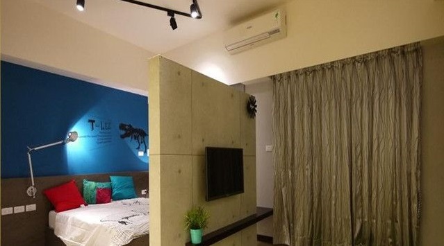 對于一居室而言,合理的空間布局很關鍵,能讓整個空間看上去井井有條。一居室通常用活動隔斷墻分割不同的功能區間,當然如果你喜歡開放的空間設計,那么可以在空間隔出一段空間用做臥室,剩下的空間做敞開設計,通過不同顏色或家具劃分其它功能區間,這樣整個空間顯得更有層次感。