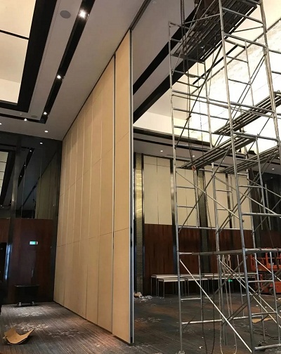 那么這種隔斷和我們通常看到的酒店內裝的導軌式隔斷有什么區別呢?通常我們看到的那種隔斷為100型活動隔斷,隔斷厚度為100mm,這種隔斷的最高可達12m。