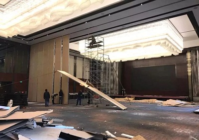 特高類型(標高9m-18m)即可稱為超高型隔斷,是眾多高星級酒店常用的活動隔墻系統,特高隔斷可以起到有效分割宴會廳,會議中心的空間,做到一廳多用,且互不干擾的用途。