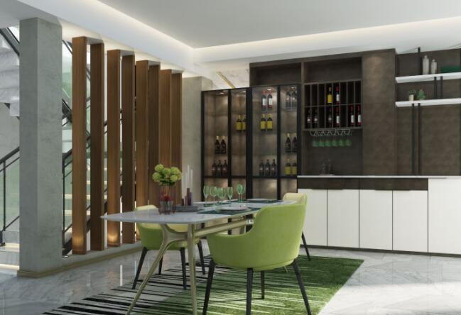 比起普通的隔斷,吧臺更加兼具美觀性與實(shí)用性。在開放式的廚房與客廳中,吧臺美觀又實(shí)用,既能收納物品又能當(dāng)小餐桌,周末還能在吧臺上和朋友一起吃飯喝酒聊天,情趣十足。
